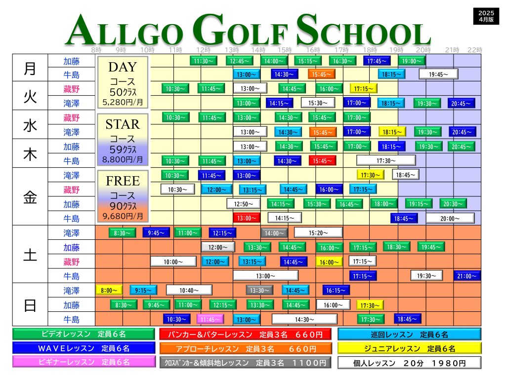 これからゴルフを始める方、上達をしたい方などのニーズに応えた月謝制による予約型のゴルフスクールです。毎日レッスンに来ても、また週2~3回来ても何回受けても料金は一緒です。レッスン内容は、個人レベルに合わせたスウィング作りやビデオを用いて矯正ポイントをわかり易く指導をしています。予約制により、人数の制限もしていますから、通常のゴルフスクールに比べて上達は早いです。